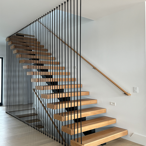 Cbmart התקנה פשוטה מונו stringer מפוברק גרם מדרגות מודרני מודרני עץ פלדה מדרגות עץ נירוסטה